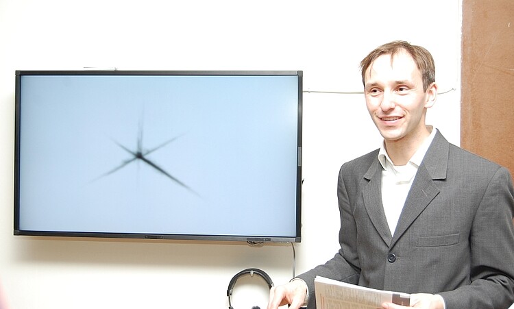 Doch Ralf Witthaus erzählt nicht nur. Er regt zum Beobachten an. Zu einigen der Werke sagt er zunächst kaum etwas. Da kann es schon mal vorkommen, dass er seine Zuhörer mit „Was seht ihr?“ dazu anregt, eine Videoinstallation zu verfolgen und diese nur auf die Menschen wirken lässt. Immer mal wieder legt er Pausen ein, in denen seine Zuhörer gebannt vor den Kunstwerken stehen, darüber nachdenken und sich ein Bild machen.