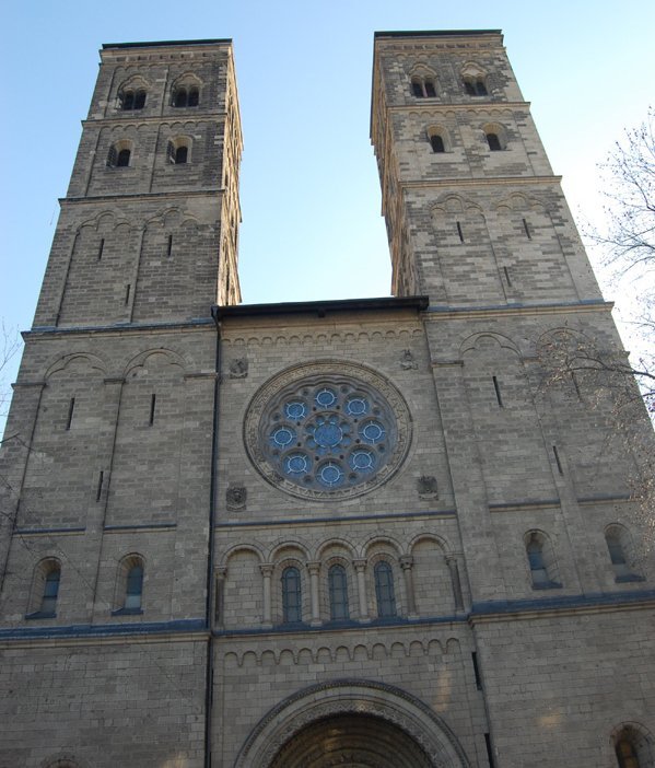 Eine klare Regelung hinterließ hingegen Mechtildis Neuhoff. In ihrem Testament vererbte sie das Gelände des Tempelhofs 1881 an die Gemeinde, verlangte aber, dass auf dem Gelände an der Deutzer Freiheit spätestens zehn Jahre nach ihrem Tod mit dem Bau einer Kirche begonnen werden müsse. Die neuromanische Kirche St. Heribert wurde 1896 fertiggestellt. Der „Düxer Dom“, wie er im Volksmund heißt, steht auf einem Gelände, das einst von der Benediktiner-Abtei St. Pantaleon in die Hände des in viele Legenden verstrickten Templerordens gelangte, bevor es 1312 in den Besitz der Johanniter überging. Der zentrale Blickfang der dreischiffigen Pfeilerbasilika, deren Grundstein vom Jerusalemer Ölberg stammt, ist der Schrein mit den Reliquien Heriberts. Der ehemalige Erzbischof gründete nach einer Schenkung Ottos III. im Jahre 1003 die Benediktiner-Abtei Deutz.