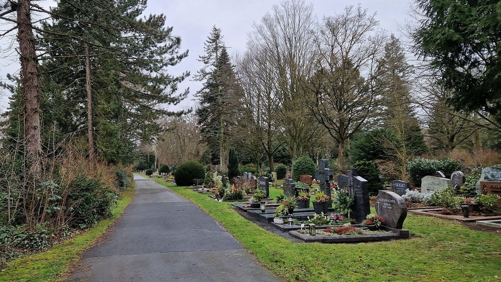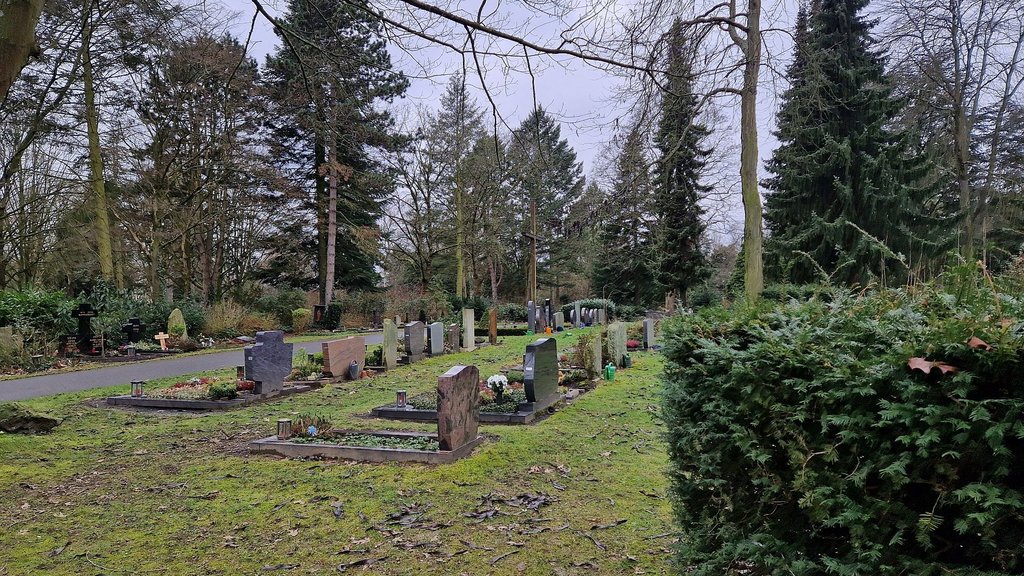 Die Trauerhalle (ca. 50 Sitzplätze) befindet sich direkt hinter dem Eingang links. Dort gibt es auch eine Besuchertoilette.