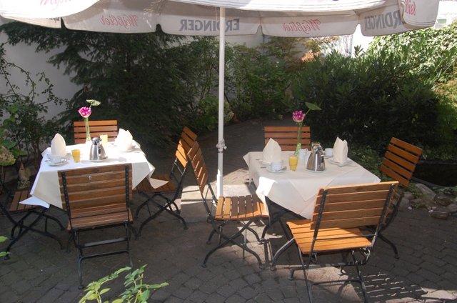Auf dem Frühstücksbuffet erwartet den Gast eine Auswahl von Brot, Wurst und Käse. Des Weiteren stehen verschiedene süße Brotaufstriche, Cornflakes und Müsli zur Verfügung. Im Sommer lässt es sich auf der kleinen, aber schönen Terrasse frühstücken.