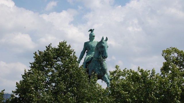 Um dem Namen der Hohenzollernbrücke alle Ehre zu machen, stehen an beiden Ufern je zwei Reiterstandbilder von Königen und Kaisern der preußischen Herrscherdynastie. Am Deutzer Ufer sind es König Friedrich Wilhelm IV. und Kaiser Wilhelm I. und auf der linksrheinischen Seite Kaiser Friedrich III. und Kaiser Wilhelm II.