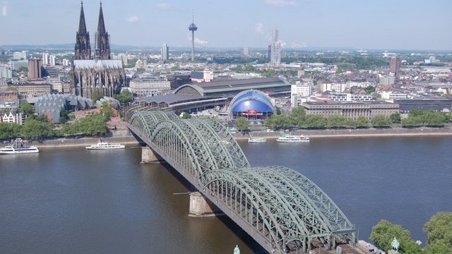Mit ihren drei Stahlfachwerkbögen ist die Hohenzollernbrücke vielleicht nicht die größte Brücke Kölns, aber mit Sicherheit die imposanteste. In ihrem heutigen Zustand ist sie eine reine Eisenbahnbrücke mit sechs Gleissträngen. Eigentlich besteht sie aus drei nebeneinander liegenden Fachwerkbogenbrücken mit je drei Bögen. Die Brücke ist über 409 m lang und 26,2 m breit.