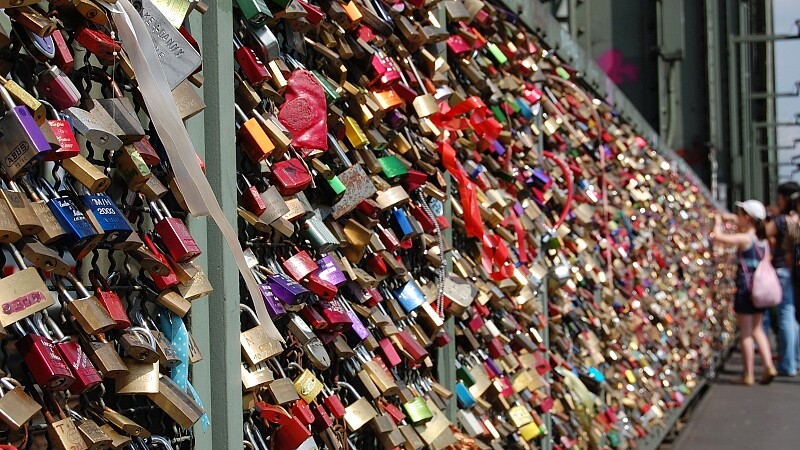 Seit einigen Jahren gibt es auf der Hohenzollernbrücke eine stetig wachsende Anzahl von Vorhängeschlössern zu bewundern. Frisch Verliebte und verheiratete Paare hängen die Schlösser an die Gitter der Brücke und werfen die Schlüssel als Symbol für die ewige Liebe in den Rhein. Dieser Brauch, der wahrscheinlich aus Italien stammt, erfreut sich auch in anderen Städten wachsender Beliebtheit. Die Deutsche Bahn AG als Eigentümerin der Hohenzollernbrücke billigt die Schlösser nach öffentlichen Protesten solange die Verkehrssicherheit und Statik gewährleistet ist.