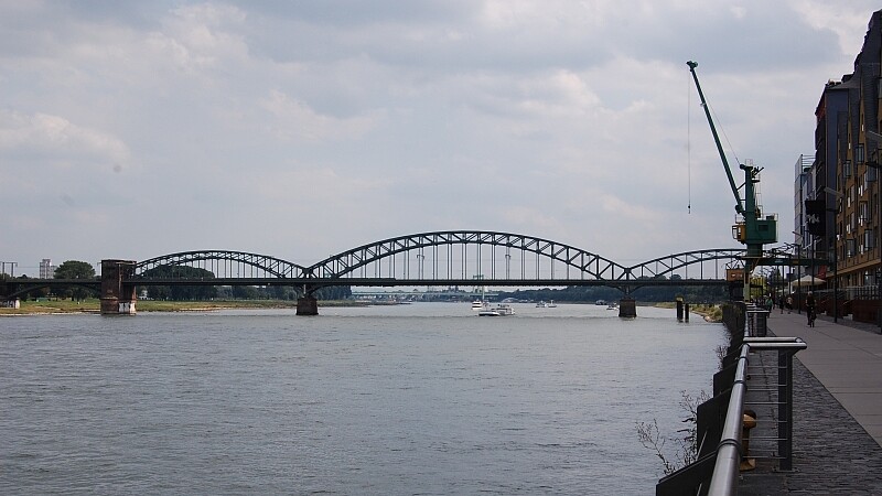 Die Südbrücke ist eine Fachwerkbogenbrücke aus Stahl. Mit ihren drei Bögen sieht sie aus wie die kleine Schwester der mächtigen Hohenzollernbrücke. 1994 wurde die Brücke teilerneuert. Sie ist 536 m lang und über 14 m breit. Eigentümerin der Südbrücke ist die Deutsche Bahn AG. Die Gehwege werden allerdings schon seit dem Bau von der Stadt Köln getragen und instand gehalten.