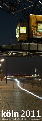 Sechs Jahre erschien der Köln-Kalender im Hochformat in schwarzweiß. Für 2011 gibt es ihn erstmals in Farbe und er hat ein mordernes und edles Gesicht bekommen. Stimmungsvolle Fotografien von Britta Schmitz werfen ein besonderes Licht auf die Stadt. Das Spektrum reicht von moderner bis historischer Architektur, von kulturellem Leben bis hin zu Rheinimpressionen. Mit ihrem Blick für verborgene Details und ungewohnte Perspektiven hat Schmitz die Stadt kunstvoll eingefangen. Durch das Hochformat entstehen spektakuläre Ansichten und neue Eindrücke.