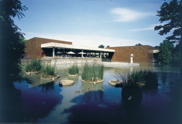 Zum Museum für Ostasiatische Kunst gehört ein kleines Café direkt am Weiher. Es ist sehr schlicht gestaltet, mit einem Steingarten im Innenhof und einer schönen Terrasse. Der 1977 eröffnete Museumsbau gehört zu den wichtigsten Baudenkmälern der klassischen Moderne in Köln.