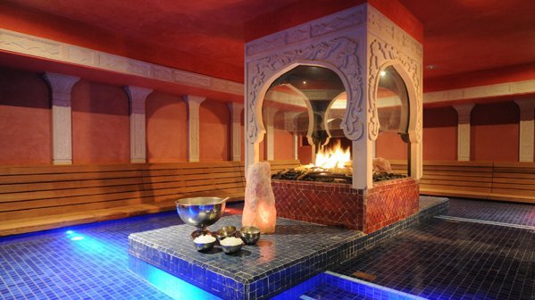 Der Saunabereich verbindet die historische Sauna mit einer asiatischen Landschaft. Alleine der asiatischen Teil bietet sieben verschiedene Saunen, unter anderem eine Kräutersauna. Es gibt auch eine Sauna exklusiv für Frauen inklusive seperaten Damen-Duschen. Der Ruhebereich ist einem japanischen Zen-Garten nachempfunden. Wer sich gerne weich bettet, kann sich auf Ruheliegen und Wasserbetten entspannen.