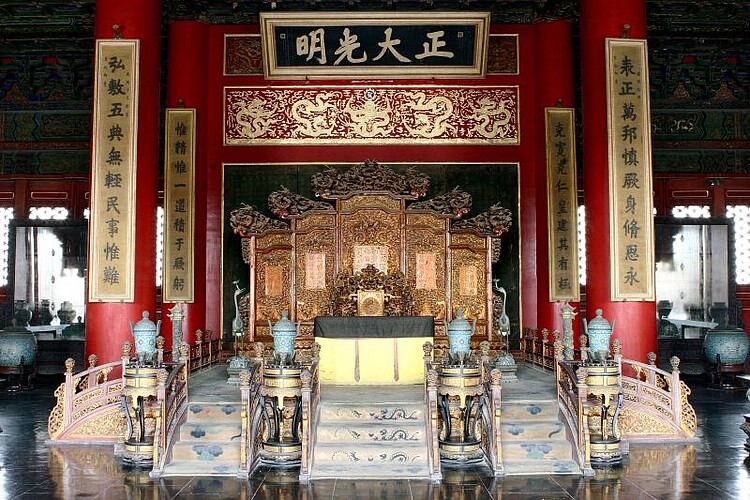 Mehr als 500 Jahre war die Verbotene Stadt Beijing Sitz der Kaiser von China. Die Palastanlage gliederte sich nach dem Prinzip von Yin und Yang in einen nördlichen inneren und einen südlichen äußeren Bezirk. Der Innere war der Wohnbezirk und der Äußere diente den Regierungsgeschäften und offiziellen Belangen.