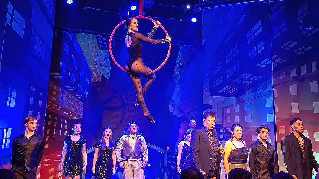 Eine Zeitreise durch 100 Jahre Musical-Geschichte feierte jetzt Premiere in Ehrenfeld. Das Kölner „Urania Thater“ unter Leitung von Bettina Montazem hat seine neueste Inszenierung „Broadway – Musical meets Varieté“ aufgeführt. Dabei ist es der Musiktheater-Regisseurin gelungen, unterschiedliche Genres miteinander zu verbinden, was auf europäischen Bühnen einmalig ist. Die Mischung aus Theater, Musical und Zirkus zaubert für die Zuschauer:innen zwei Stunden eine Welt aus „Big Apple“ mit dem Wunsch nach Lebendigkeit.