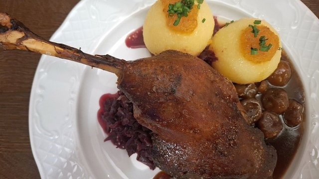 3-Gänge-Gänsemenü für vier Personen: Euro 65,- pro Person.
