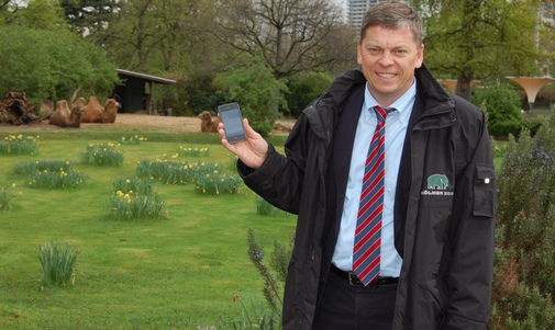 Christopher Landsberg, kaufmännischer Vorstand des Kölner Zoos, bei der Präsentation der Zoo-App am 12. April 2012 (Foto: Teschner / Koeln-Magazin.de)