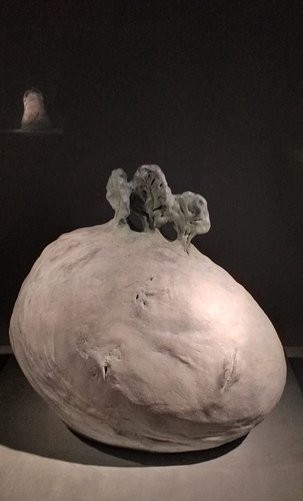 In den Plastiken der seit 1972 in Europa lebenden Japanerin Leiko Ikemura spielen hybride Wesen eine große Rolle. Hasen mit einem Hohlkörper als Unterbau erscheinen als fremde Wesen zwischen den Welten von Mensch und Tier, denen man fragend gegenübersteht. Liegende keramische Plastiken erinnern den Betrachter an die Vergänglichkeit, „memento mori“. Ihre Horizontbilder wiederum greifen die japanische Landschaftsmalerei auf.