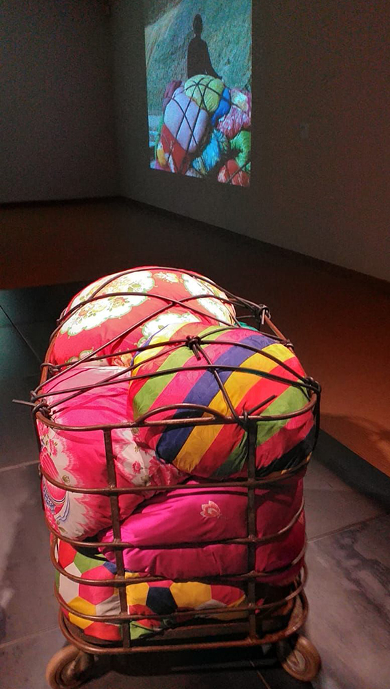 Kimsooja, geboren 1957, ist eine südkoreanische Künstlerin und lebt seit 1998 in New York. Ihre Bottari-Installationen greifen typische Gepäckballen und Stoffbündel auf, wie sie noch heute von der Landbevölkerung Koreas auf dem Moped transportiert werden. Die farbenprächtigen Bündel (Bottari) stehen für das „Gepäck“, welches jeder bewusst oder unbewusst mit sich führt und symbolisieren aktuell auch Heimatlosigkeit und Migration.