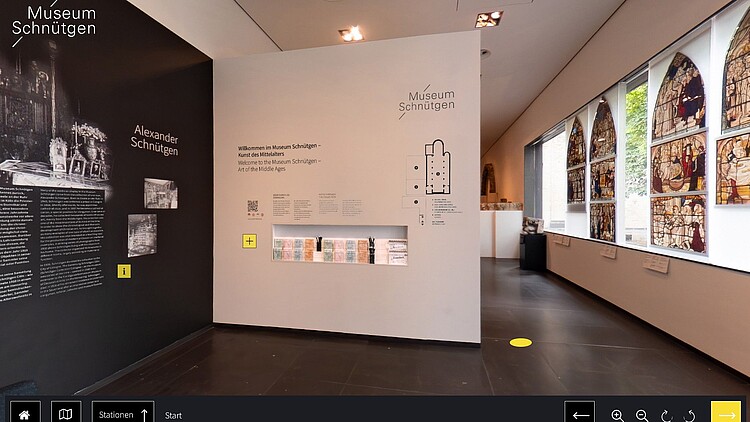 Vom Museumsfoyer direkt in die Museumskirche? Kein Problem. Über eine interaktive Karte können sich Interessierte an jeden beliebigen Punkt des Museums versetzen. Dabei ist auch die Sonderausstellung „Licht in dunklen Zeiten. Mittelalterliche Glasmalerei aus dem Khanenko Museum in Kyjiw“ (bis 12. April 2026) mit interaktiven Links zum digitalen Ausstellungskatalog integriert.