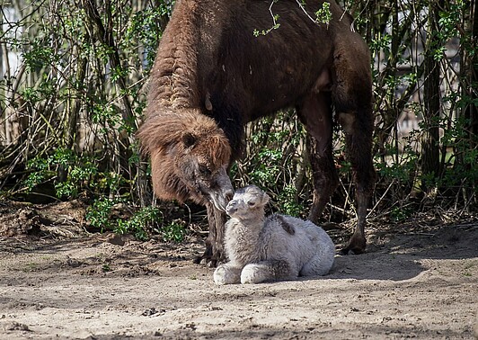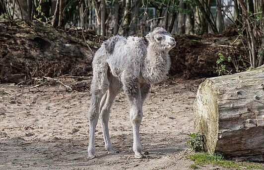Am Samstag, dem 19. März 2020, kam im Kölner Zoo ein weibliches Trampeltier (Camelus ferus bactrianus) auf die Welt. Es hat eine auffällig weiße Färbung und ist das zweite Jungtier von Mutter „Charlotte“, die Ende 2016 aus dem Zoo Dortmund an den Rhein kam. Vater ist der alteingesessene Hengst „Ivan“. Am Samstag wusste das noch namenlose Fohlen noch nicht so viel mit sich anzufangen, aber seit Sonntag erkundet es neugierig die Anlage.