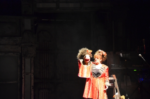 Biggi Wanninger im Gespräch mit ihrer Handpuppe