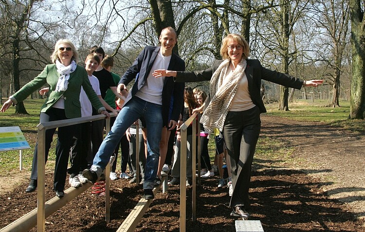 Sportbegeisterte können ab sofort im erweiterten Stadtwald in Köln-Lindenthal am Heinrich-Stevens-Weg einen neuen Trimm-dich-Pfad ausprobieren. Der Scherz e.V. von Ex-FC-Spieler Matthias Scherz hat die fast 50.000 Euro teure Anlage finanziert und gibt auch Geld für die Unterhaltung der Geräte. Bürgermeisterin Elfi Scho-Antwerpes nahm gemeinsam mit Bezirksbürgermeisterin Helga Blömer-Frerker offiziell die Spende von Matthias Scherz entgegen. Schülerinnen und Schüler der Klasse 9c des Schiller-Gymnasiums in Köln-Sülz testeten den Parcous unter Anleitung ihrer Sportlehrerin Heike Fassbender.