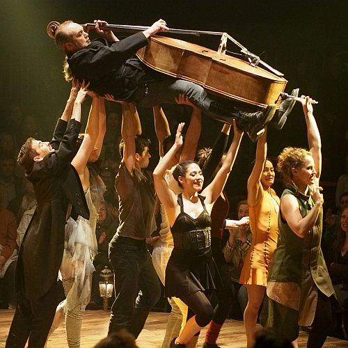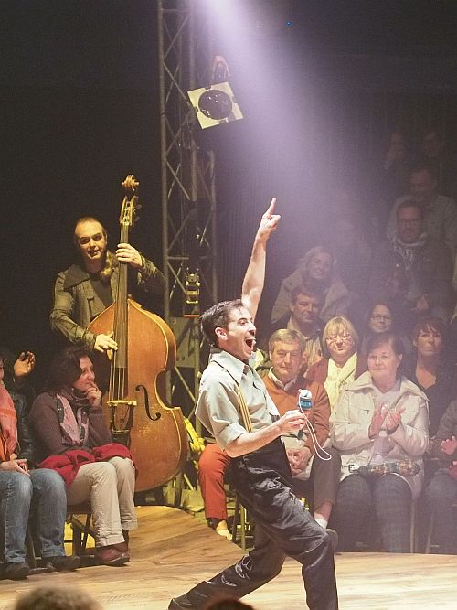 Dazu entwickeln sich magische Geschichten, clowneske Einlagen – exzentrisch und liebenswert von Mariano Carneiro dargeboten – Tanz und Akrobatik. Poetisch das Zwiegespräch zwischen Kontrabass und Reif-Jonglage. Komisch und wild die „Hexen“ Lea Mäuer und Andrea Schulte an der chinesischen Stange. Schwindelerregend die tänzerische Jonglage mit Bällen und Ton von Jimmy Gonzalez. Geheimnisvoll und mit seinem afrikanischen Gesang manche Darbietung tragend der Poet und Musiker Aziz Kuyate, Meister der Kora (zitaähnliches Streichinstrument). Herausragend der vielseitige Ernesto Terri, argentinischer Tangotänzer, verführerisch-spielerisch mit seiner Partnerin, aufregend und dennoch stilsicher auf dem Seil. Sofern er nicht Tango tanzt, verblüfft er die Zuschauer mit Zaubertricks, die sie so noch nie gesehen haben.