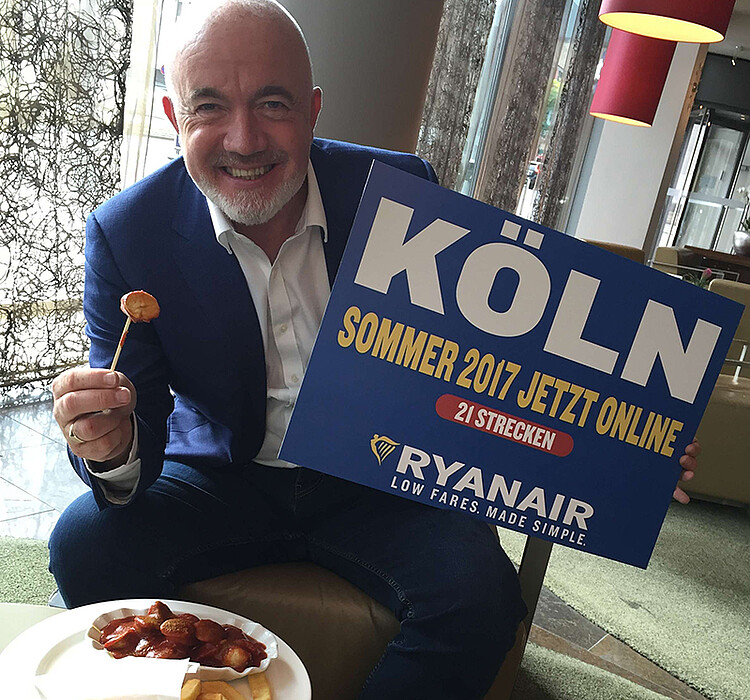 Einen kleinen Seitenhieb auf die Preispolitik des Flughafens Köln/Bonn kann sich Ryanair-Werbechef David O’Brien nicht verkneifen. Bei dem Grundpreis von ca. 16 Euro je Passagier, den Ryanair an den Flughafen zahlen muss, liegt Köln/Bonn mit Lissabon gleichauf. Aber es kommen noch ca. 15 Euro Steuern und Abgaben in Köln/Bonn hinzu, so dass pro Passagier ca. 31 Euro von der Fluggesellschaft zu zahlen sind. Diese zusätzlichen Kosten empfindet O’Brien als eine deutliche Wachstumsbremse. Seine Botschaft an deutsche Flughäfen und Politik: „Ryanair wächst weiterhin stark in Deutschland und kurbelt damit den Wettbewerb an. Das hat einen positiven Effekt für Kunden, senkt die Kosten für Flüge und weitet das Angebot aus. Es gibt noch wesentlich mehr Potenzial für weitere günstige Flüge mit Ryanair im deutschen Luftfahrtraum."