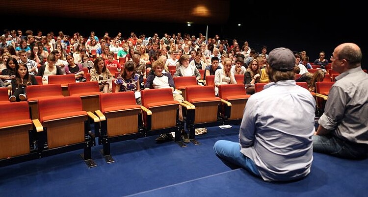 Schüler und Filmschaffende diskutieren über die neuesten Kurzfilme auf dem Kurzfilmfest "mov" in Köln (Foto: KultCrossing)