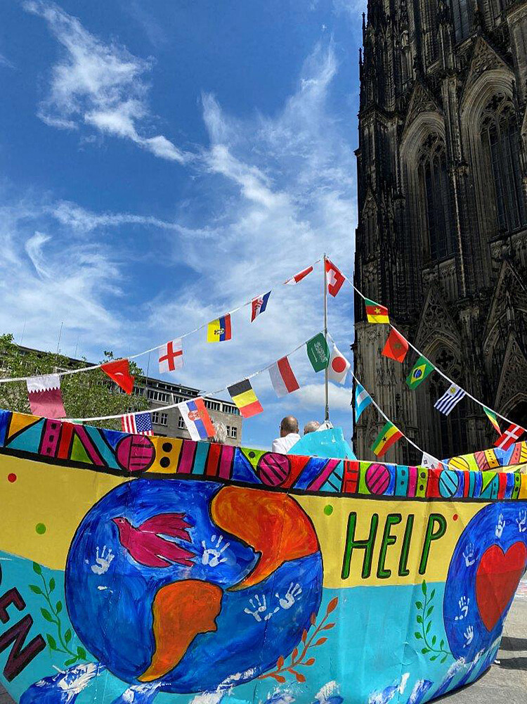 Von Köln aus nehmen die Boote Fahrt auf in Richtung Berlin. Dort werden über einhundert XXL-Origami-Papierboote am Weltflüchtlingstag, dem 20. Juni 2024, im Berliner Lustgarten ein weithin sichtbares, politisches Zeichen für Solidarität mit Geflüchteten gesetzt.