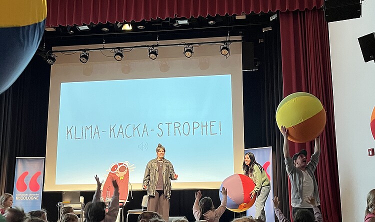 Im Rahmen der lit.Cologne gingen Mai und Marie der Frage nach, ob die Dinosaurier alle tot sind. Spoiler: Sind sie nicht. „Ich habe gerade wieder einen Dino gesehen“, erklärt Mai und weckt damit die Neugier der Kinder und ihrer Begleitpersonen. Und dann wird viel erklärt: Es geht um Evolution, Wissenschaft und Biologie.