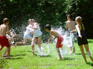 Im Mülheimer Stadtgarten hingegen heißt das Motto der Ferienspiele „Sommer, Sonne und das Meer“. Hier erleben die Jungen und Mädchen ein Wellenbad am großen Schwungtuch und gestalten eine Unterwasserwelt mit Haien, Seesternen, versunkenen Städten und vielen bunten Fischen. Auf einer Wasserrutsche kann ausgiebig geplanscht werden und auch auf der Hüpfburg oder der Riesenschlange haben die Kinder die Gelegenheit ihren Bewegungsdrang auszuleben.
