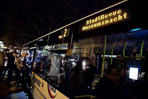 Mit dem Bus-Shuttle geht es bequem zu den einzelnen Kunststationen (Foto: Museumsnacht Köln 2013)