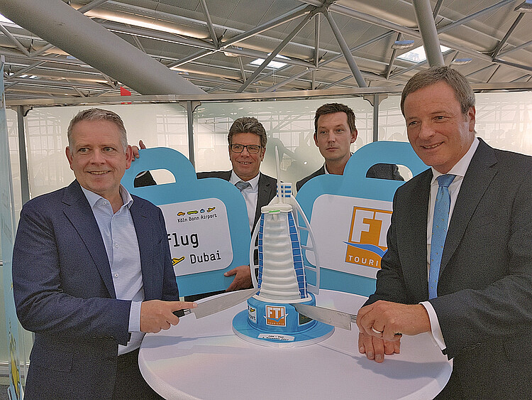 Nonstop in die Glitzer-Metropole im Wüstensand: Seit diesem Freitag, 03. November 2017, können Passagiere des Reiseveranstalters FTI von Köln/Bonn nach Dubai in den Vereinigten Arabischen Emiraten fliegen. Einmal wöchentlich geht es mit einer Boeing 757 des FTI-Kooperationspartners Condor in die Metropole am Persischen Golf. Das neue Angebot ergänzt das bereits bestehende Orient-Portfolio der FTI am Köln Bonn Airport: Die Charter-Strecken nach Salalah im Oman und nach Hurghada in Ägypten sind bereits eingeführt.