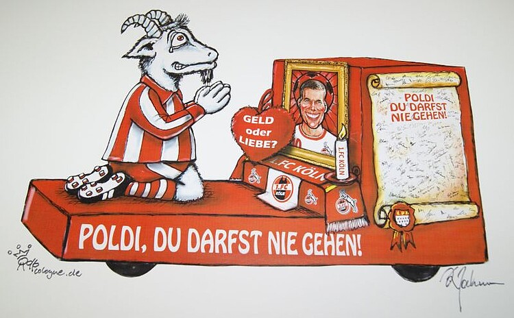 Das Festkomitee Kölner Karneval von 1823 baut einen Wagen für den Rosenmontagszug 2012, der Lukas Podolski davon überzeugen soll, beim 1. FC Köln zu bleiben. Wenn er seinen Vertrag verlängert, schenkt ihm das Festkomitee die Aufbauten seines Wagens. Viel mehr noch könnte Podolski den Wagen für sich außerhalb der Session nutzen. „Gerne stellen wir Poldi den kompletten Wagen auch nach dem Rosenmontagszug zur Verfügung, zum Beispiel für ein Sommerfest mit vielen Kindern und im Rahmen der Lukas Podolski Stiftung “, so Christoph Kuckelkorn, Zugleiter des Kölner Rosenmontagszuges.