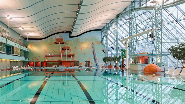 Das Agrippabad liegt mitten in der Stadt und bietet eine moderne Bad- und Saunalandschaft. Ein besonderes Highlight ist der 10-Meter-Turm im Innenbereich.