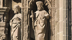 Nord- und Südwand des Rathauses sind mit überreichem gotischen Maßwerk geschmückt, das große Holzskulpturen des frühen 15. Jahrhunderts umschließt. Die Nordwand zeigt acht Propheten des Alten Testaments. diese standen einst in der von hier aus zum Rathausturm führenden Prophetenkammer. Einst standen auf den Konsolen des Turmes 124 Skulpturen. Sie sollten berühmte Kölner oder für die Stadt wichtige Persönlichkeiten verewigen. Die meisten dieser Skulpturen gingen aber im Krieg verloren. Der Stadtrat beschloss daraufhin den 18 „Überlebenden“ 106 neue Figuren zur Seite zu stellen. Die Stadt füllt langsam die leeren Flächen des Rathauses wieder auf. Unten Kaiser und andere Herrscher, darüber Männer und Frauen der Stadtgeschichte, ganz oben die Heiligen aus Köln.