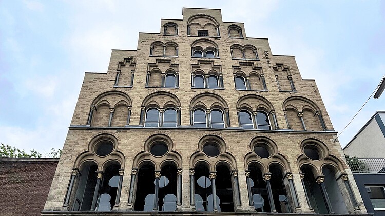 Den krönenden Abschluss erfährt die Fassade des Overstolzenhauses durch ihren imposanten Treppengiebel. Das Overstolzenhaus ist das einzig erhaltene romanische Patrizierhaus in Köln und zugleich das größte und schönste in ganz Deutschland.