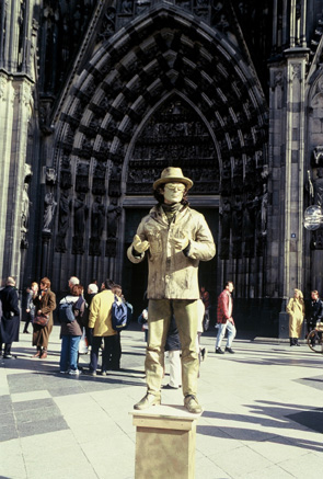 Die Straßenkünstler sind es auch, die sich am besten mit der Domplatte haben anfreunden können. Das kann der Pflastermaler sein, Pantomimen, Zauberer, Jongleure etc.