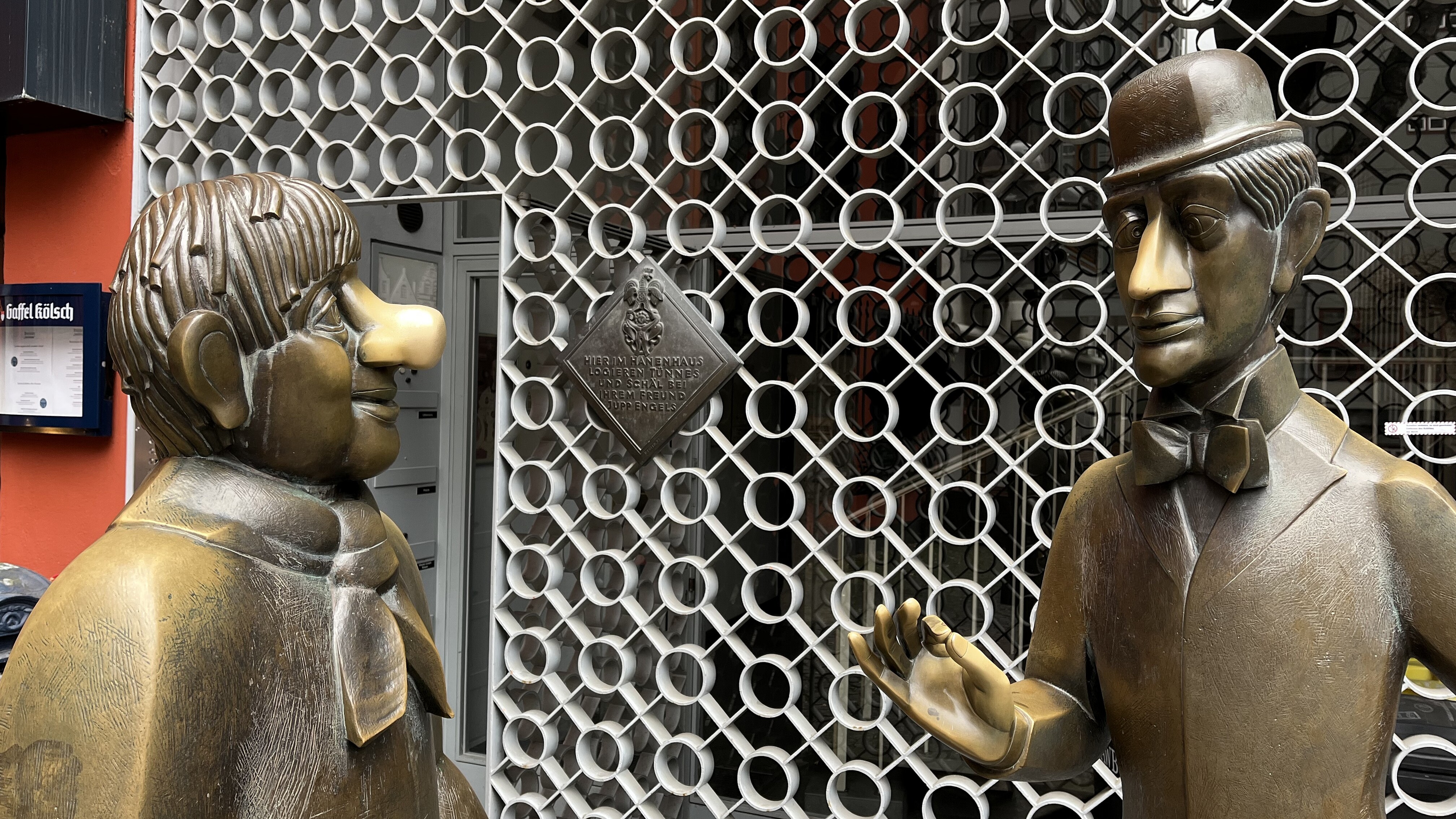 Auch an anderen Stellen in der Kölner Altstadt begegnen aufmerksamen Besuchern Tünnes und Schäl immer mal wieder, z.B. an Hausfassaden.