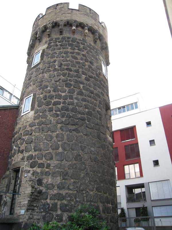 Am Konrad-Adenauer-Ufer steht der Kunibertsturm, besser bekannt unter seinem Spitznamen „Weckschnapp“ .