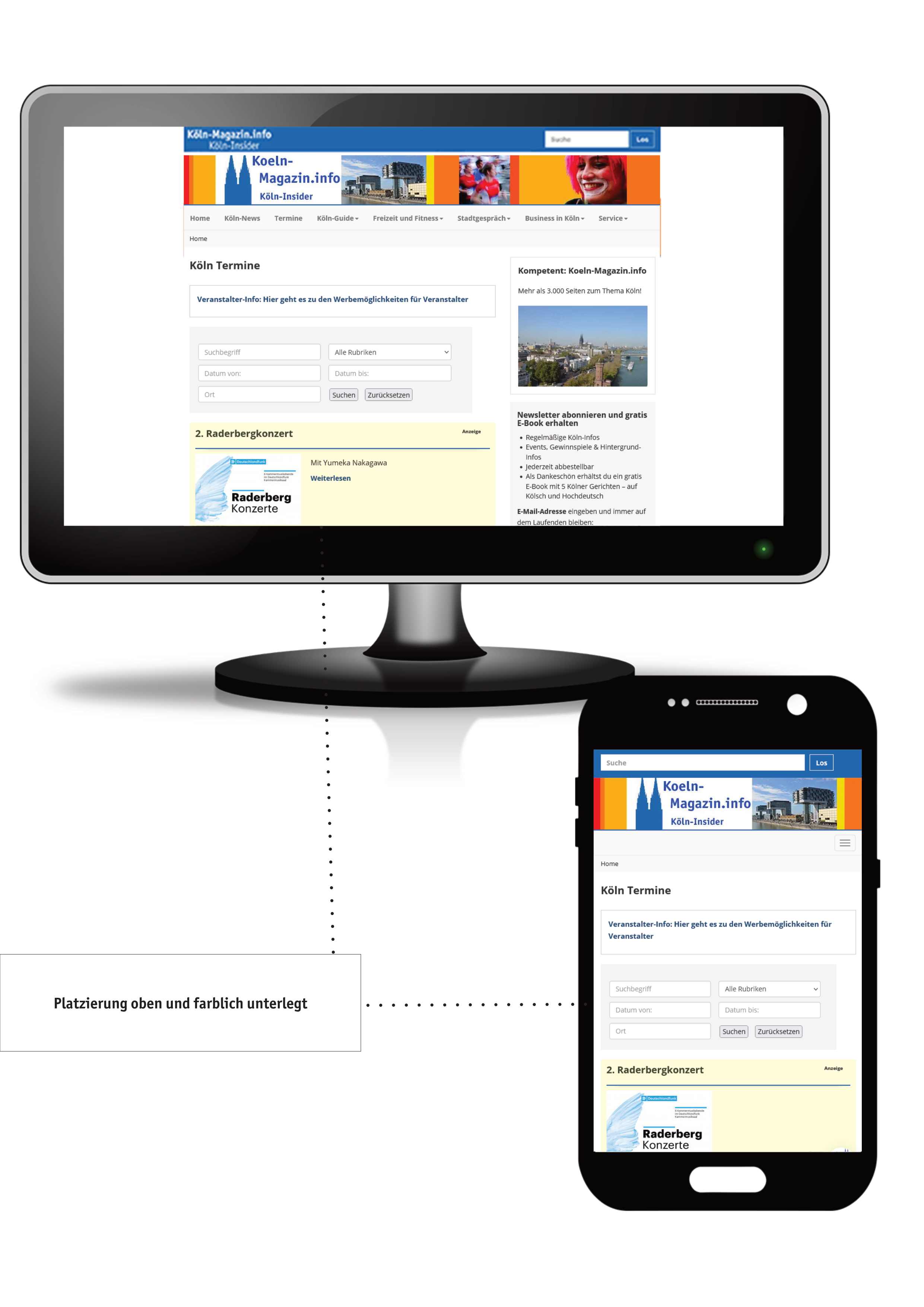 - Newsletter: Eine Anzeige erscheint in unserem Köln-Newsletter.