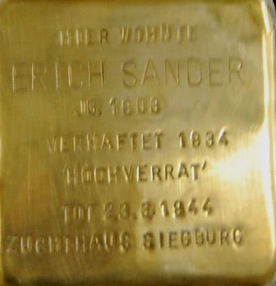Hier wohnte Erich Sander, geboren am 22. Dezember 1903 in Linz an der Donau. Der Sohn des bekannten Fotografen August Sander engagierte sich seit 1925 in der „Kommunistischen Partei Deutschlands“ gegen den aufkommenden Nationalsozialismus.