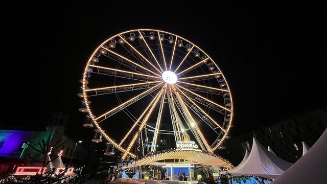 Ein Highlight ist das Riesenrad direkt neben dem Weihnachtsmarkt.