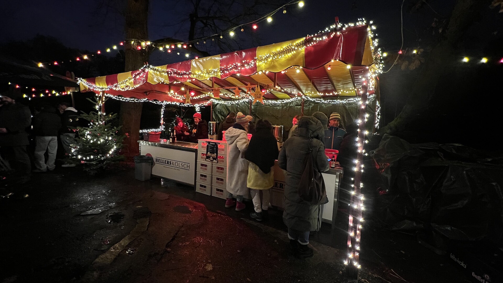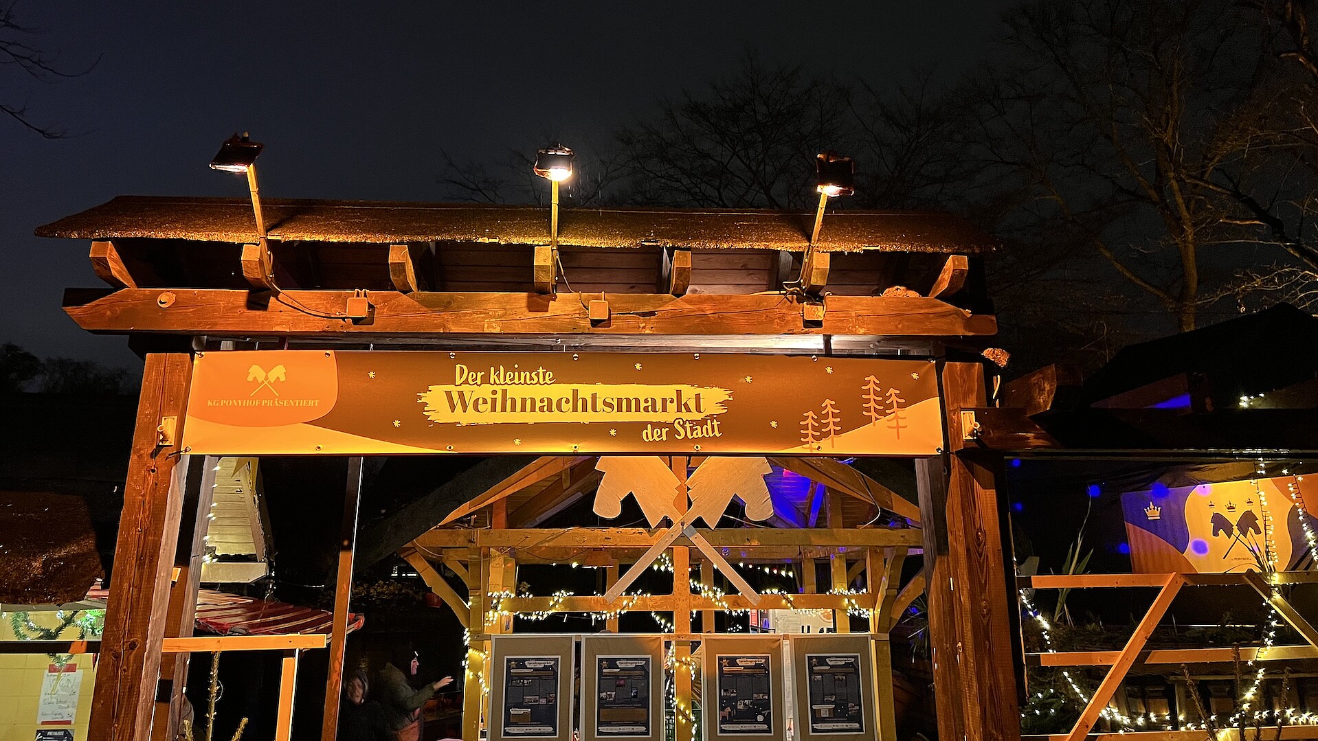 Der kleinste Weihnachtsmarkt der Stadt wird von dem Verein KG Ponyhof organisiert und findet in diesem Jahr im Hellers Biergarten im Volksgarten statt. Neben heißem Glühwein und Punsch gibt es auch Kölsch, Wein und andere Kaltgetränke, dazu Würstchen vom Grill, ein wechselndes Food-Angebot und Händler:innen, die ihre eigenen Waren anbieten.
